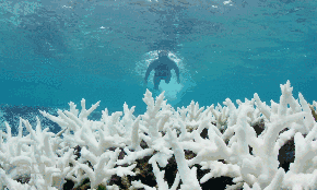 2016年,因为人类活动造成温室气体的过量排放,大堡礁经历了破纪录的高温热浪。也正因温度过高,珊瑚将身体里的共生海藻排出体外,共生的关系被瓦解。共生海藻离开了珊瑚,珊瑚失去了绚丽的颜色和养分,双方迅速死亡。于是,白化现象出现了。
